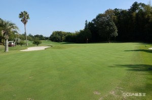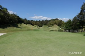 グリーンは正面に望めるが、距離がしっかりあるミドルホール。カート道路の左はOBゾーンが続いている。アンジュレーションのある大きなグリーンは、ボールの切れ方も微妙で、3パットも出やすい。