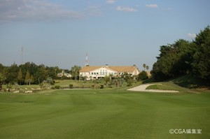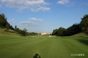 グリーンまでストレート、第2打から上りとなるパー4。距離がある分、タフなホール。第2打はセンターを大きめに狙うのが得策。フェアウェイ左に点在するバンカーにはパンパースが植えられていて目を和ませる。しかし、入ると厄介なので、左に引っ掛けはご法度。