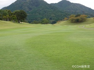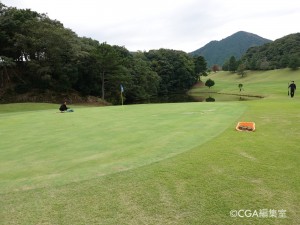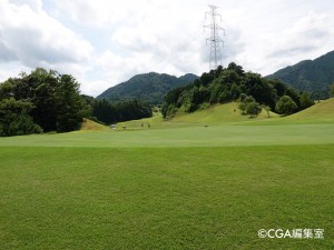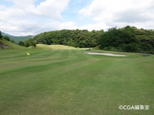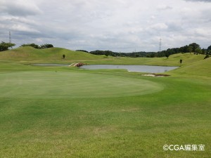 第2打地点はフラット。グリーンに向かっては少し打ち上げになるので、番手を上げた方が良い。グリーンは左から右手に向かって速い。スコアメイクには手前からの攻めが基本と言える。