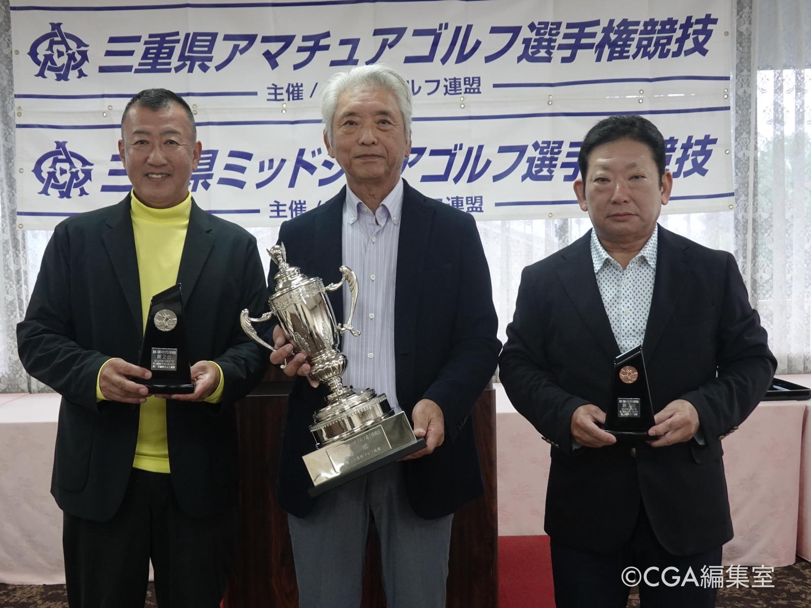 3オーバー75ストロークで丹羽政次郎選手(六石GC)、栗田昌俊選手(CRC三重白山GC)、井本覚選手(CRC三重フェニックス)、今西弘幸選手(西日本777GC)、寺西克之選手(トーシンプリンスビルGC)の5選手が並んだ。丹羽選手は会場を出ていて棄権となり、残る4人でのプレーオフになった。勝負は3ホール目で井本選手が勝ち切った。