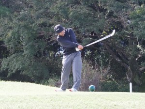 76ストロークで並んだ4選手はマッチングスコアカード方式で順位が決定され、松本選手がトップ、2位入賞となった。アウトからスタートして、前半で3ボギー、1ダブルボギーの5オーバー。「右にも左にも曲がってしまって、なんともならなかった。ショットがバラバラでした」と挫けそうになったが、松本選手は「開き直って」後半でスイングを変えるという作戦に出た。「アップライトなのをちょっと横振りにしてみたんです。そしたら、芯に当たるようになって、バーディが取れたんです」と嬉しそう。松本選手は、前日の県アマに続いて今日は県シニアの出場だったが、さすがに疲れたようで、「実はね、最後にちょっと足が攣りかけたんですよ」とこっそり教えてくれた。52歳。