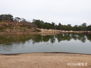 17番から18番に向かうとティーイングエリアの左側に池が広がっている。以前はハスの花がきれいに咲いていたが、今はカモたちが越冬する綺麗な池になった。