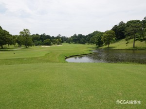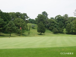 左ドッグレッグのミドルホール。井上誠一氏らしい柔らかな曲線のレイアウトが特徴である。ショートカットは雑木林越えとなるため、ロングヒッターでない場合はお勧めしない。第2打は打ち上げがきついので番手を一つ上げるなどの攻略が有効となる。奥からは難しいので手前からを鉄則に。