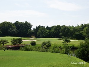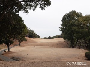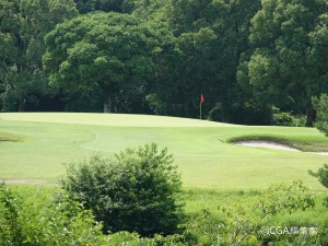 左ドッグレッグのミドルホール。井上誠一氏らしい柔らかな曲線のレイアウトが特徴である。ショートカットは雑木林越えとなるため、ロングヒッターでない場合はお勧めしない。第2打は打ち上げがきついので番手を一つ上げるなどの攻略が有効となる。奥からは難しいので手前からを鉄則に。